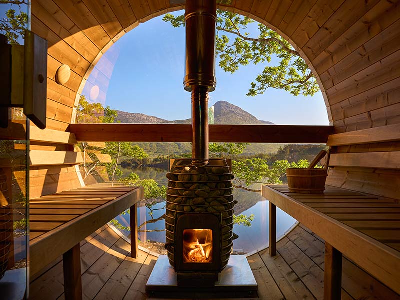 Set against the backdrop of the estate’s serene woodlands, the outdoor saunas overlooking the lake offer a unique opportunity to unwind and rejuvenate in a truly natural setting. Each sauna is equipped with a cold pull bucket, and guests are encouraged to take a refreshing dip in the estate’s pristine lake plunge area. The surrounding forest provides the perfect environment for a calming post-sauna stroll, allowing guests to extend their relaxation and fully embrace the therapeutic benefits of nature.